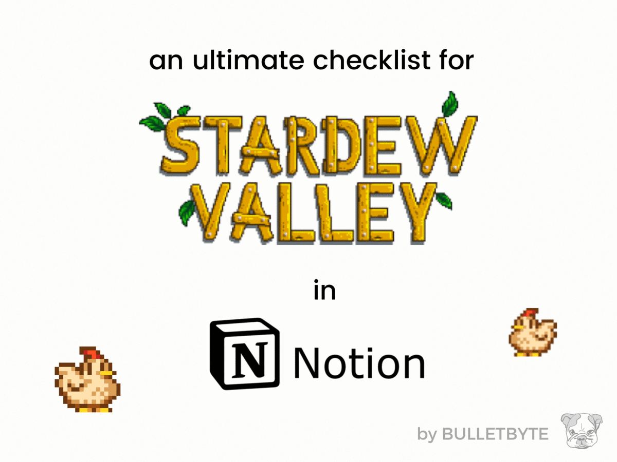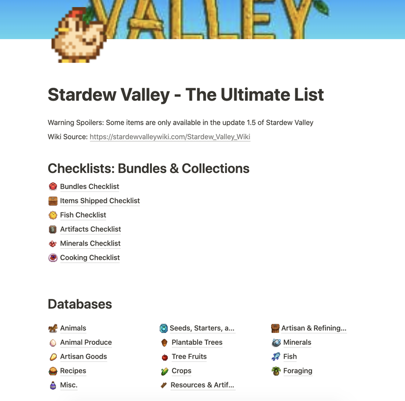 This Notion template is a massive checklist that I have created for one of my favourite games - Stardew Valley.