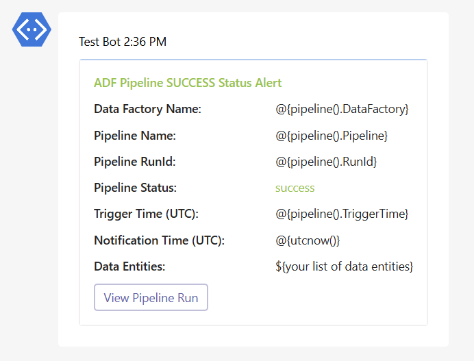 - ADF Success Notification Adaptive Card JSON file