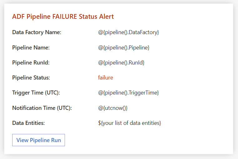 - ADF Failure Notification Adaptive Card JSON file